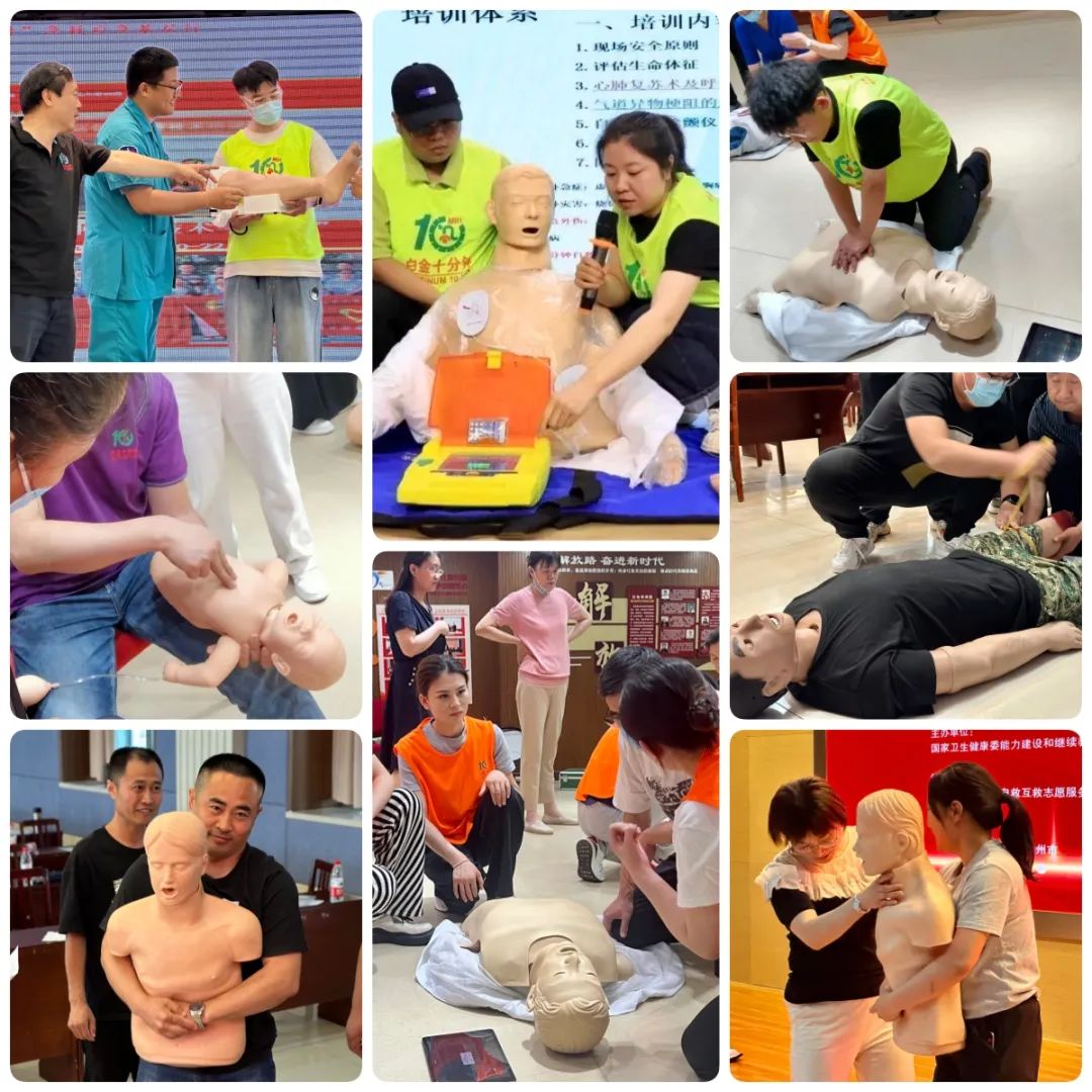 天津天堰科技股份有限公司作為本次活動的公益支持單位,全程參與并提供培訓產(chǎn)品支持。在現(xiàn)場實操環(huán)節(jié),“白金十分鐘 黃金一小時”專家團隊及各院專家團隊共同為參會人員科普宣講急救知識,培訓急救技能。針對心肺復蘇操作、解除氣道異物操作、AED操作等實用技術進行分組輪訓,為大家演示和講解急救操作技能,詳細分解示范演練規(guī)范動作,手把手教授動作要領,帶領大家積極參與,動手練習。