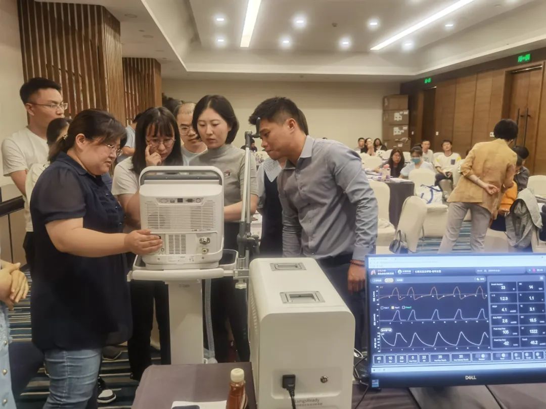 在進(jìn)行機(jī)械通氣實(shí)戰(zhàn)課程時(shí),天堰科技“模擬肺”模擬了“心衰、自主呼吸強(qiáng)但不穩(wěn)定”、“重癥肌無力”“哮喘伴意識(shí)不清醒”、“創(chuàng)傷后呼吸困難3天,確認(rèn)為ARDS”等不同疾病狀態(tài)下患者的呼吸運(yùn)動(dòng)變化,現(xiàn)場學(xué)員爭先上手體驗(yàn)真實(shí)呼吸機(jī)對“模擬肺”虛擬病人進(jìn)行救治,李晨主任與天堰技術(shù)人員配合不斷調(diào)整虛擬病人病情,增加救治難度。呼吸治療師袁吉騰老師則對學(xué)員的實(shí)操進(jìn)行專業(yè)指導(dǎo)。此次實(shí)戰(zhàn)課程達(dá)到了很好的授課效果,收獲了現(xiàn)場學(xué)員的一致好評,天堰科技“模擬肺”被在場專家贊譽(yù)為“國貨之光”。